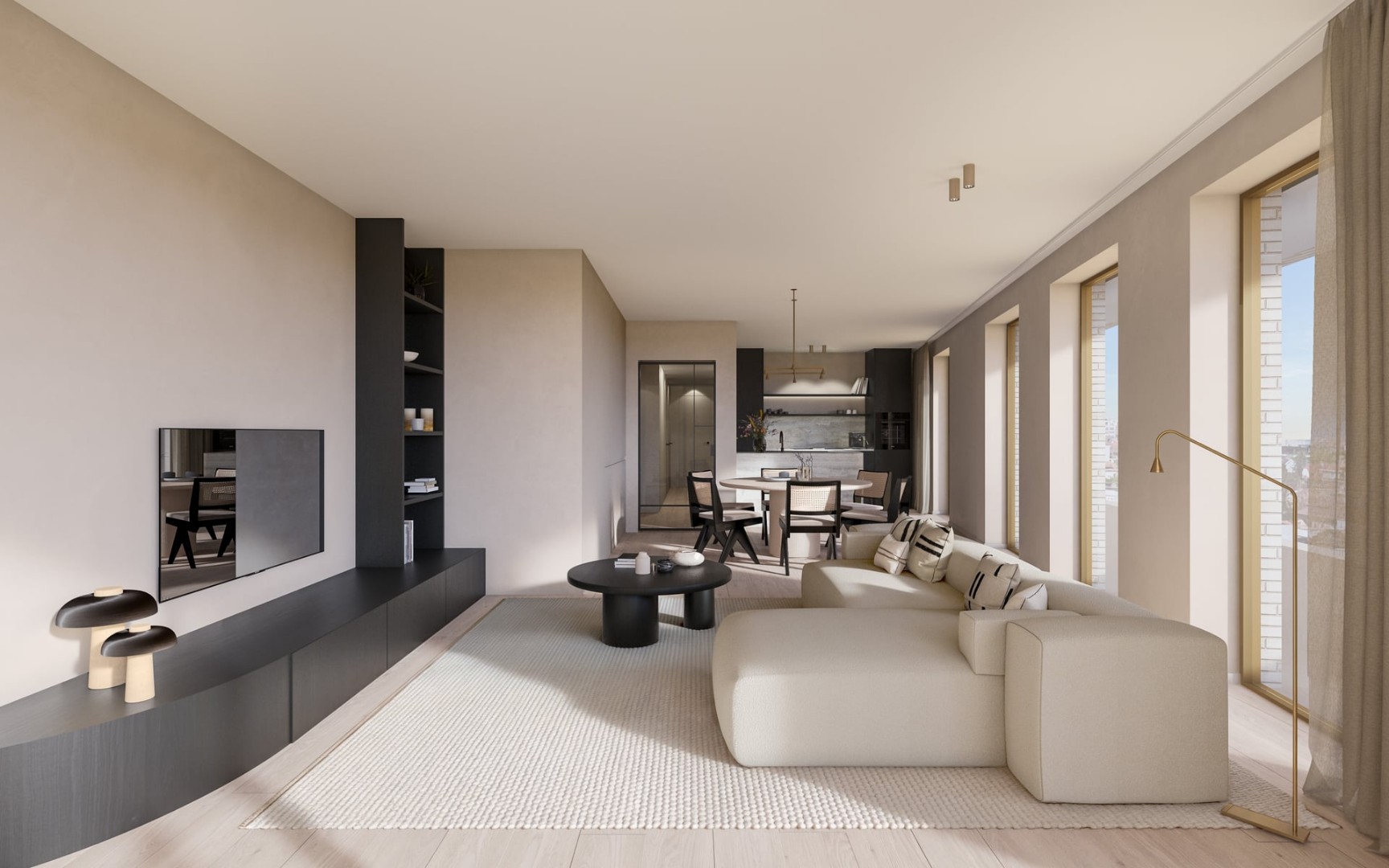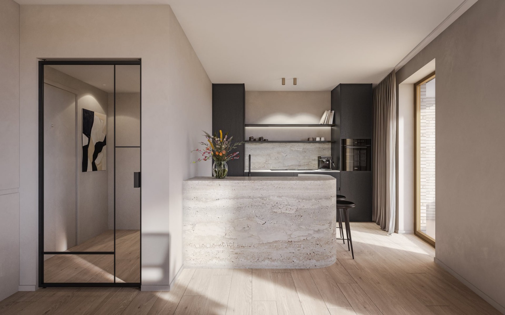 Ce magnifique appartement d'angle au 3ième étage avec vue sur la grande place fait partie d'une résidence de 28 unités résidentielles, toutes finies avec des matériaux durables et faciles d'entretien. Chaque unité dispose d'un chauffage au sol géothermique, un système qui utilise la chaleur géothermique pour le chauffage en hiver et le refroidissement passif en été. Le système de ventilation D contribue à créer un climat intérieur agréable et économe en énergie.