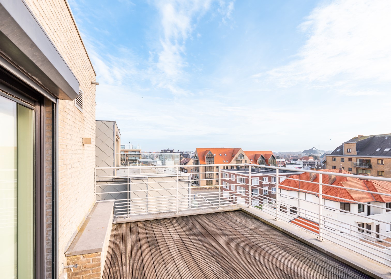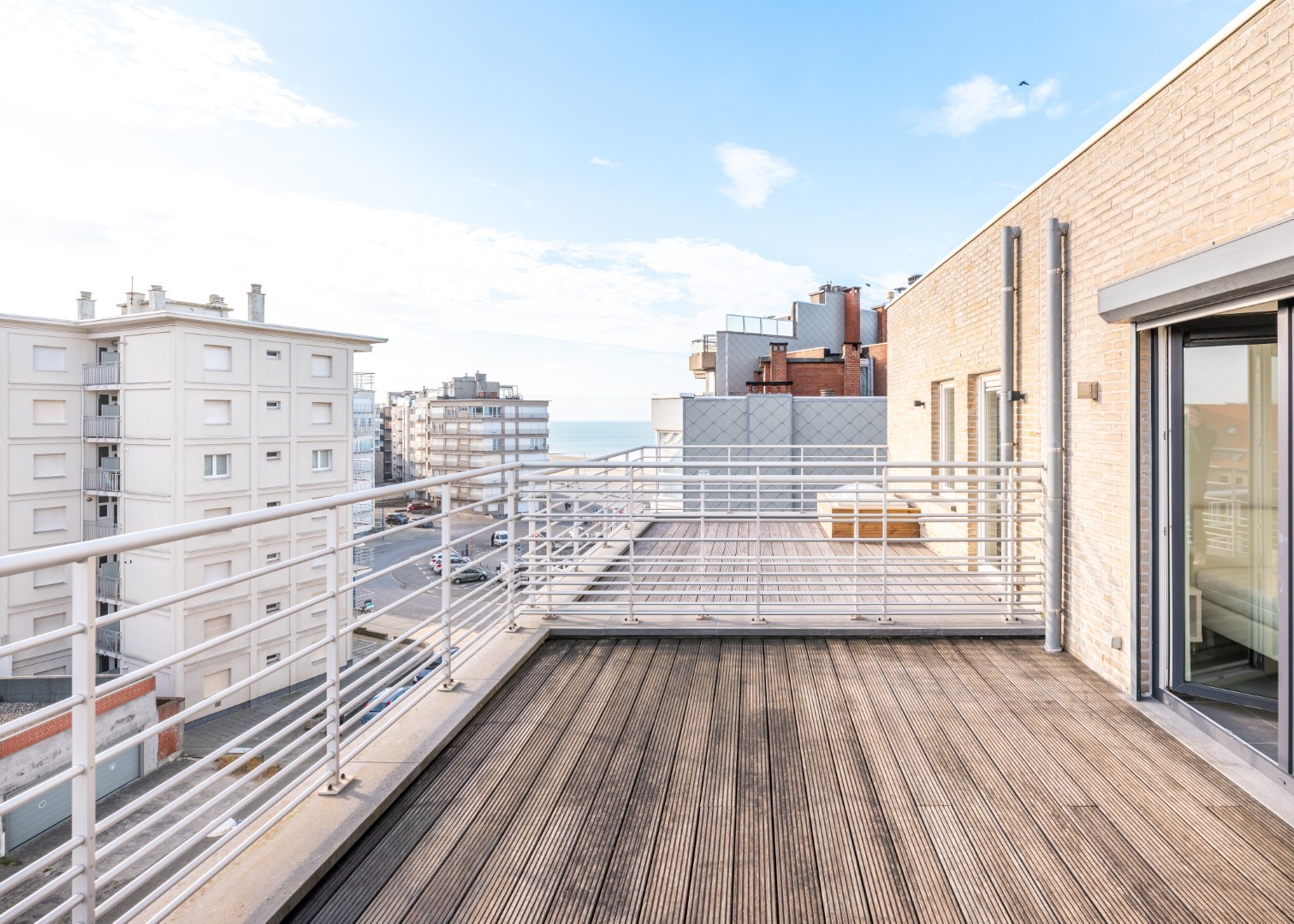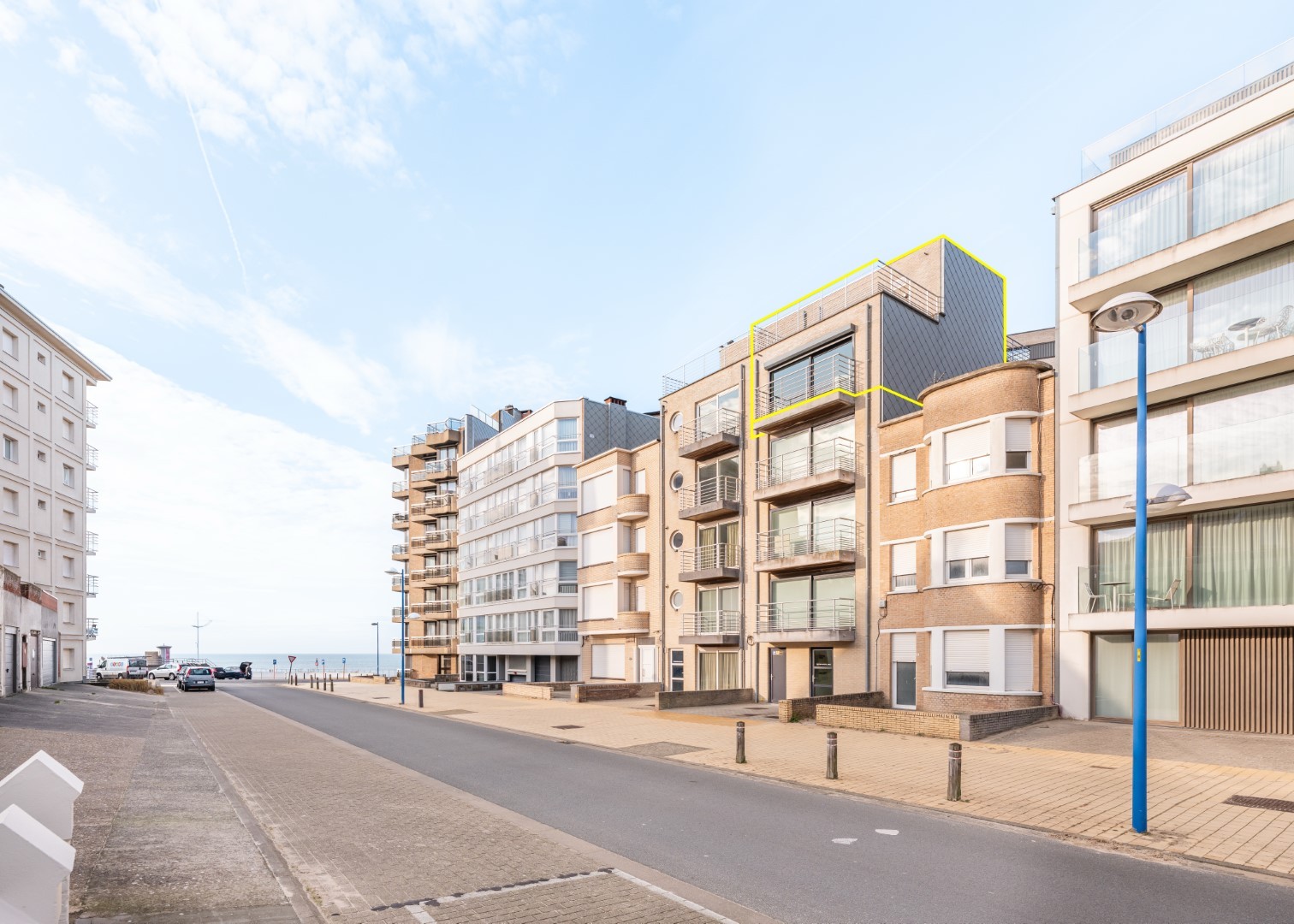 Duplex penthouse appartement met grote zonneterrassen, zicht op zee en 2 slaapkamers te huur in de kleinschalige residentie Zeewandeling.