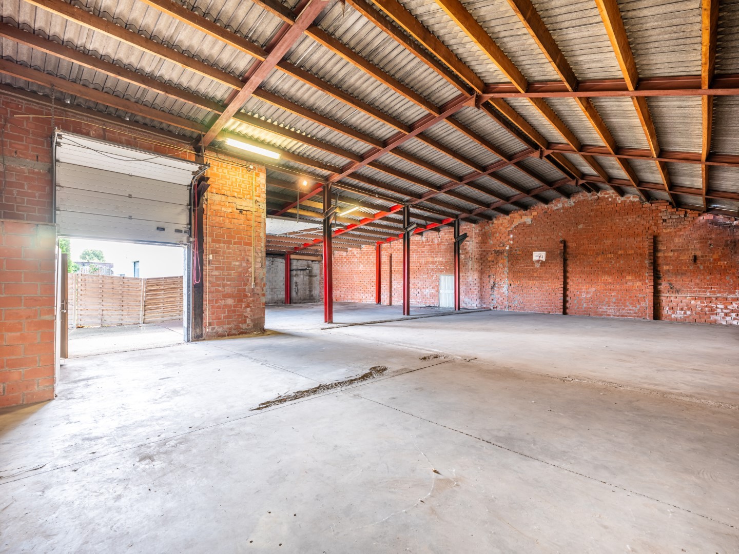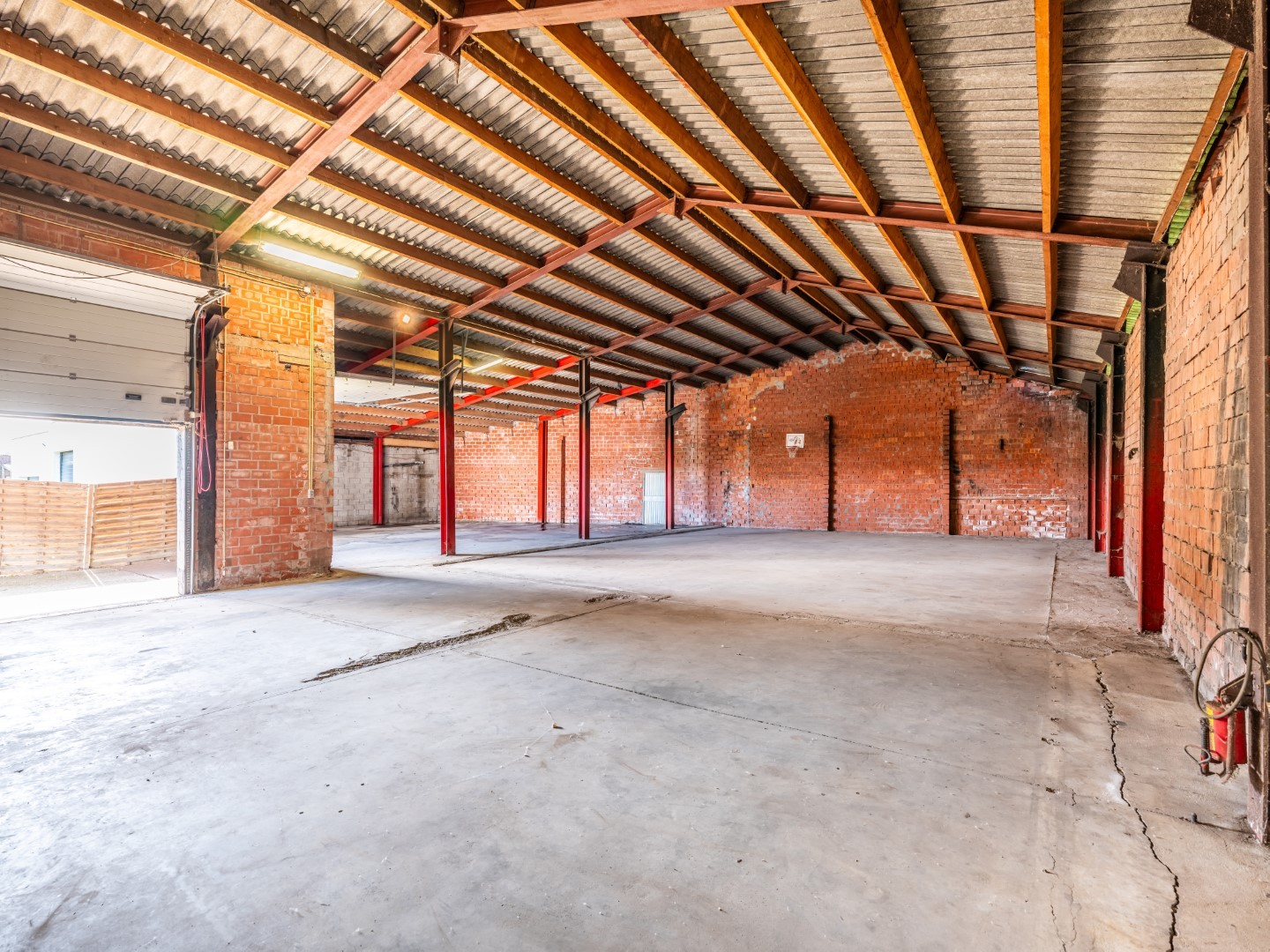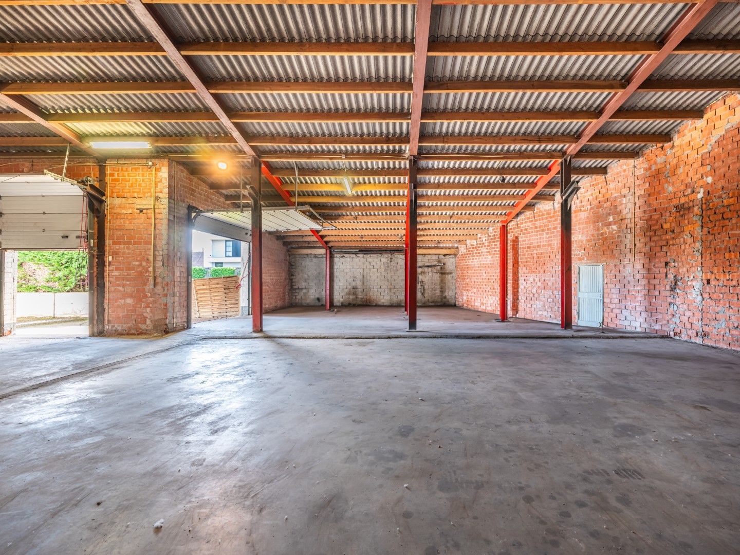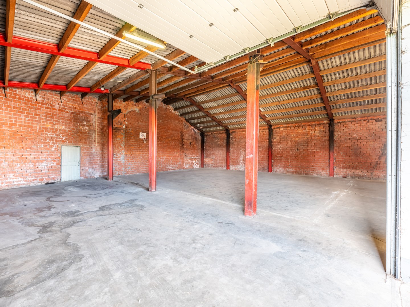 De loods is voorzien van elektriciteit en koud water. Dankzij de 2 sectionale poorten die voorzien zijn van sloten, kunt u gemakkelijk laden en lossen en uw goederen veilig achter slot en grendel bewaren. Er is ook een poort met slot aan de straatkant.