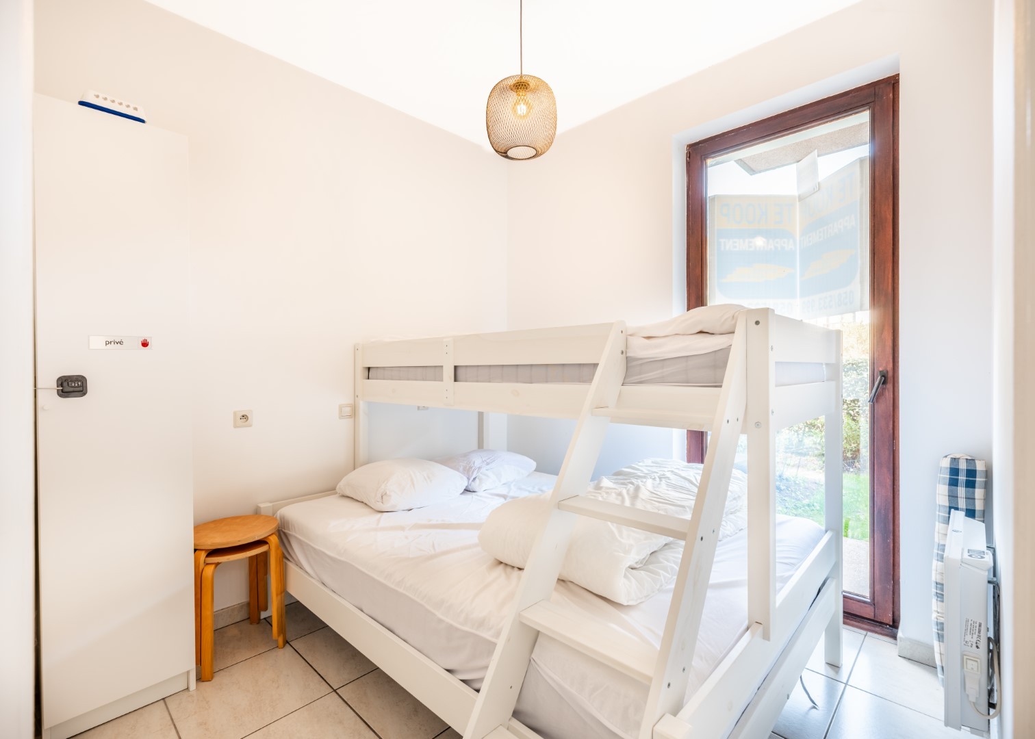Het appartement werd als volgt ingedeeld: Lichtrijke leefruimte met open en volledig uitgeruste keuken | badkamer met douche, lavabo in meubel en toilet | volwaardige slaapkamer | private tuin.