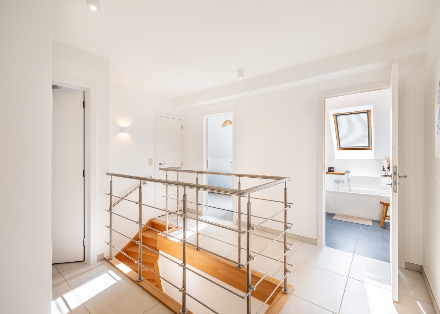 4de verdieping: Nachthal | GROTE masterbedroom | 3de volwaardige slaapkamer | 4de slaapkamer | badkamer met bad en lavabo in meubel | 2de afzonderlijk toilet met toegang tot 3de berging.