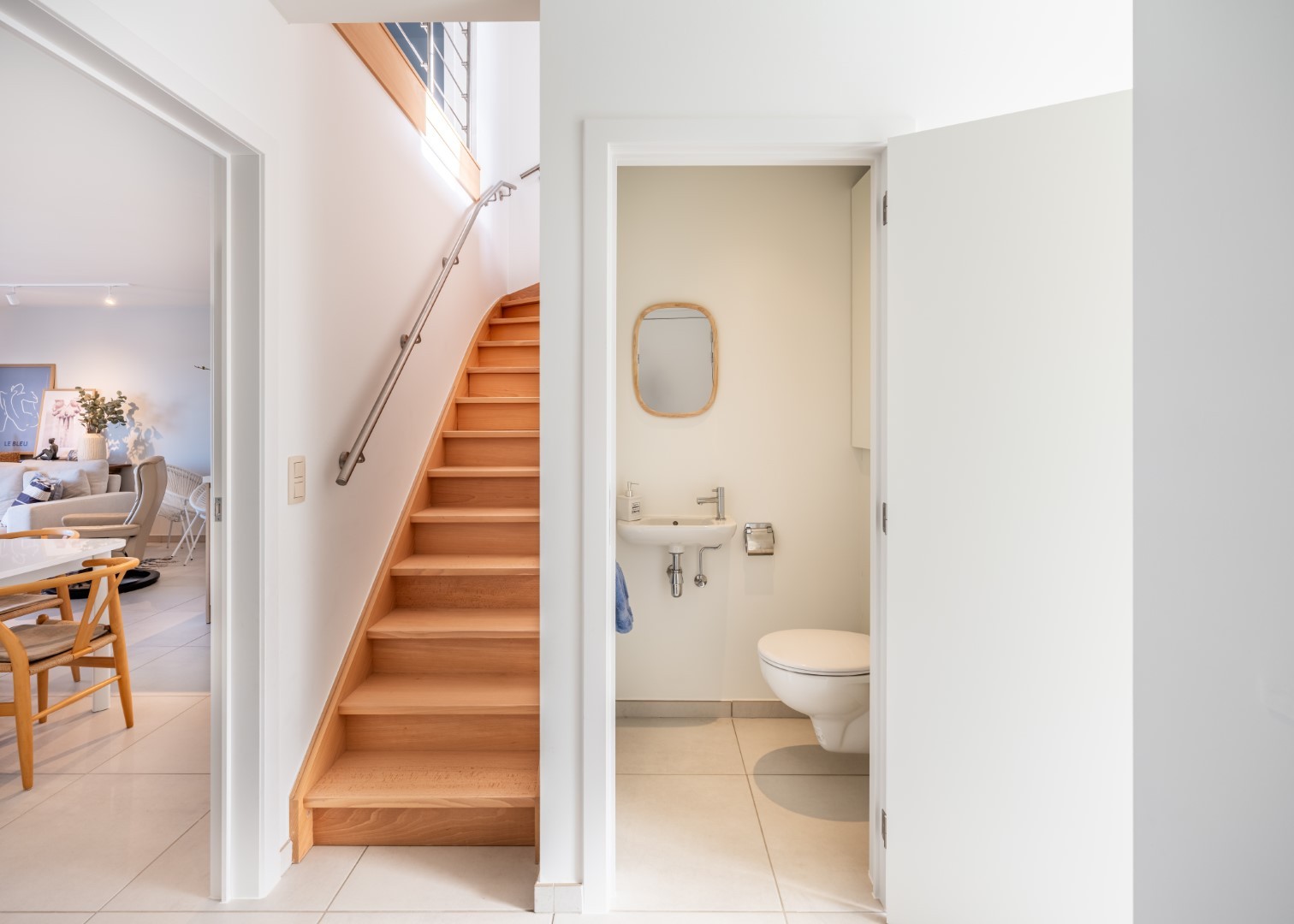 Bij de indeling van dit appartement werd een duidelijke scheiding gemaakt tussen het leefgedeelte en het slaapgedeelte. Bovendien bevindt zich op de derde verdieping een volwaardige slaapkamer met bijhorende badkamer, waardoor alle essentiële voorzieningen zich op één niveau bevinden en het appartement voor iedereen comfortabel toegankelijk is.